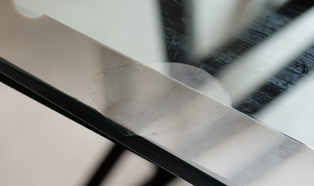 ガラスの再生研磨のプロフェッショナル GRS/お役立ち情報/Zanotta(ザノッタ)製テーブル「Reale(レアーレ)」ガラス天板欠け修復