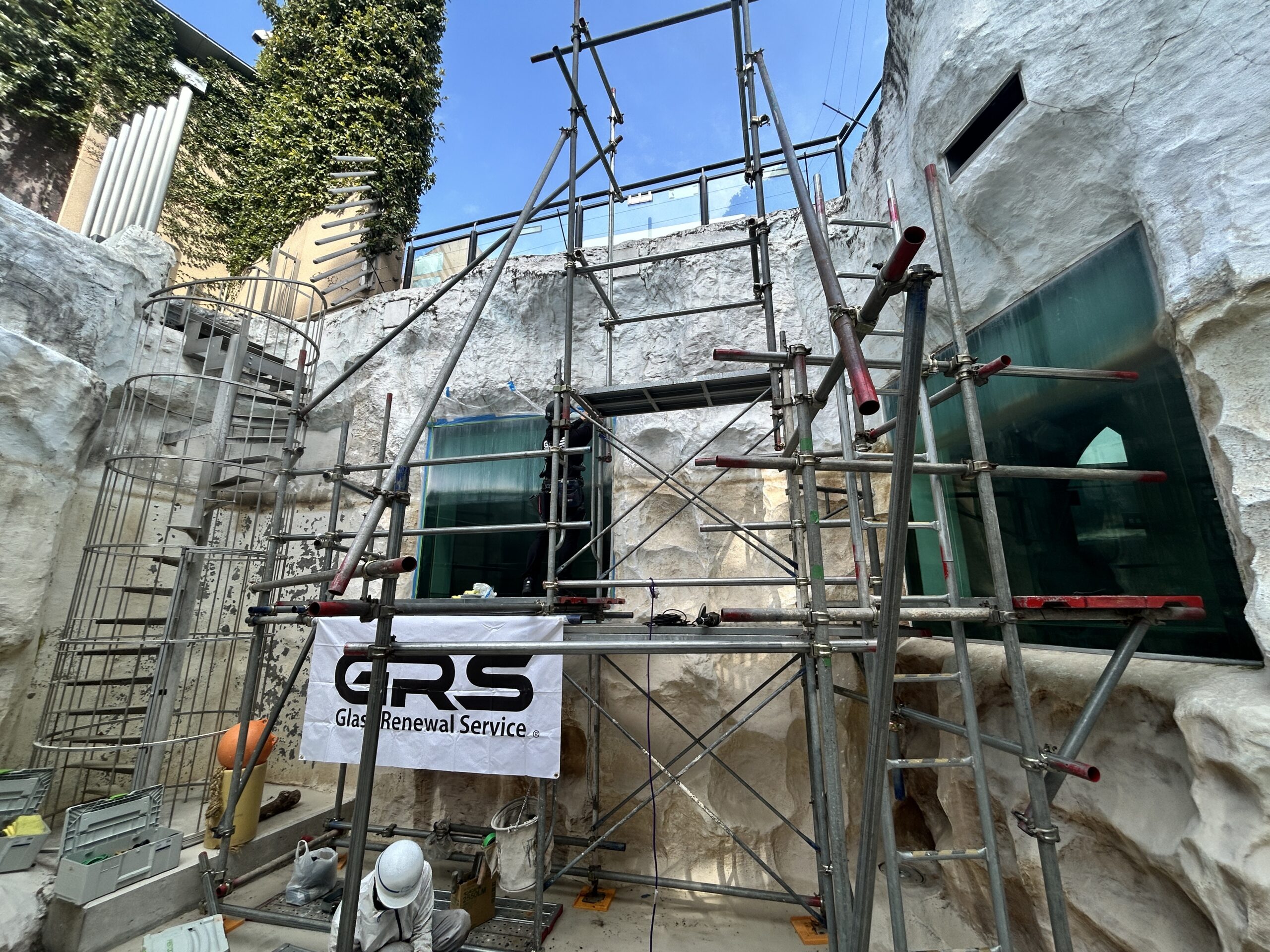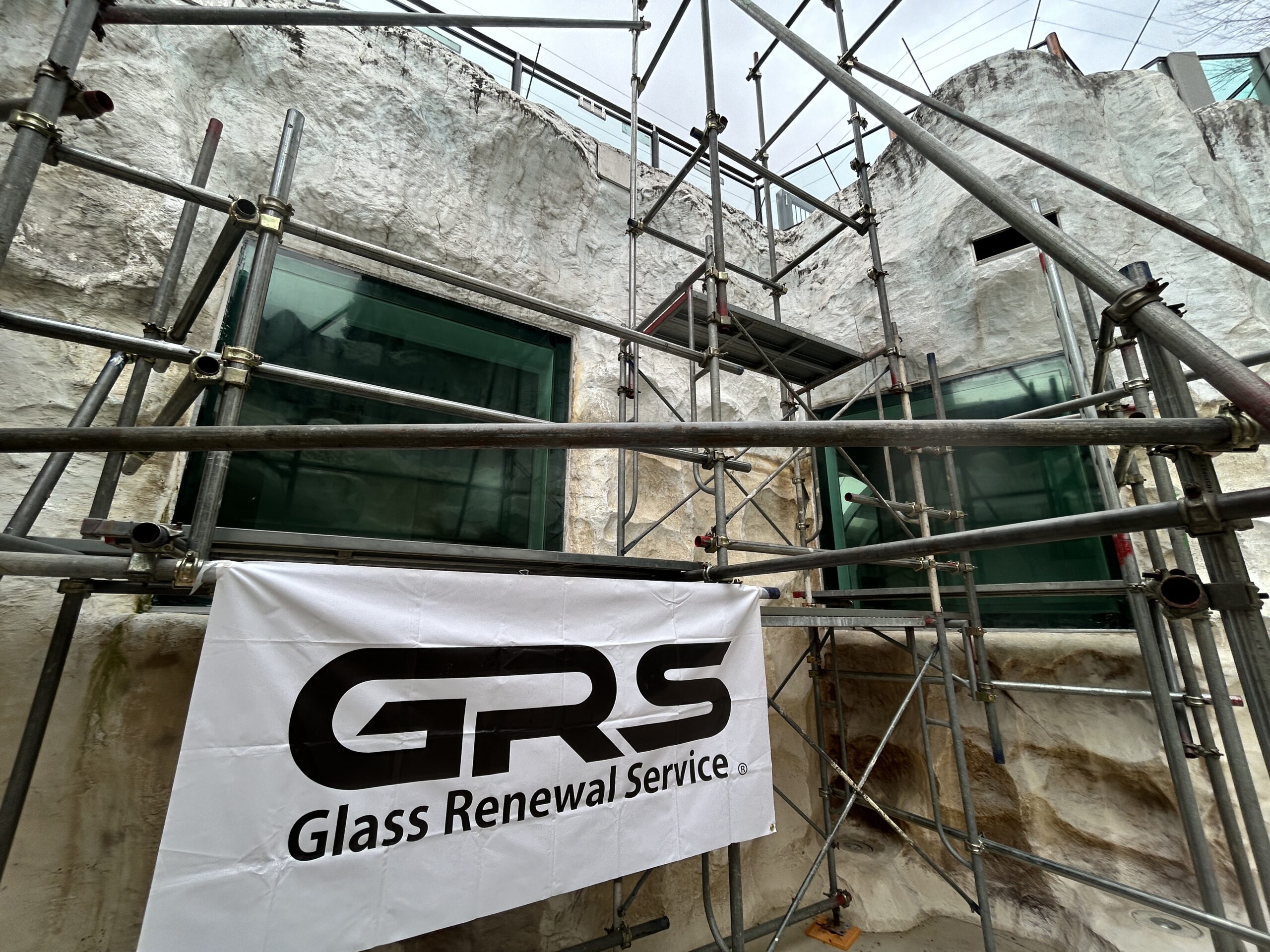 施工後は、視界が大きく改善され、ガラスの前に多くの来園者が集まるようになりました。ガラスの透明感は、動物園での感動体験をより深くする重要な要素です。GRSは今後も、動物たちと人々をつなぐ“クリアな窓”を、再生研磨の技術で守り続けてまいります。